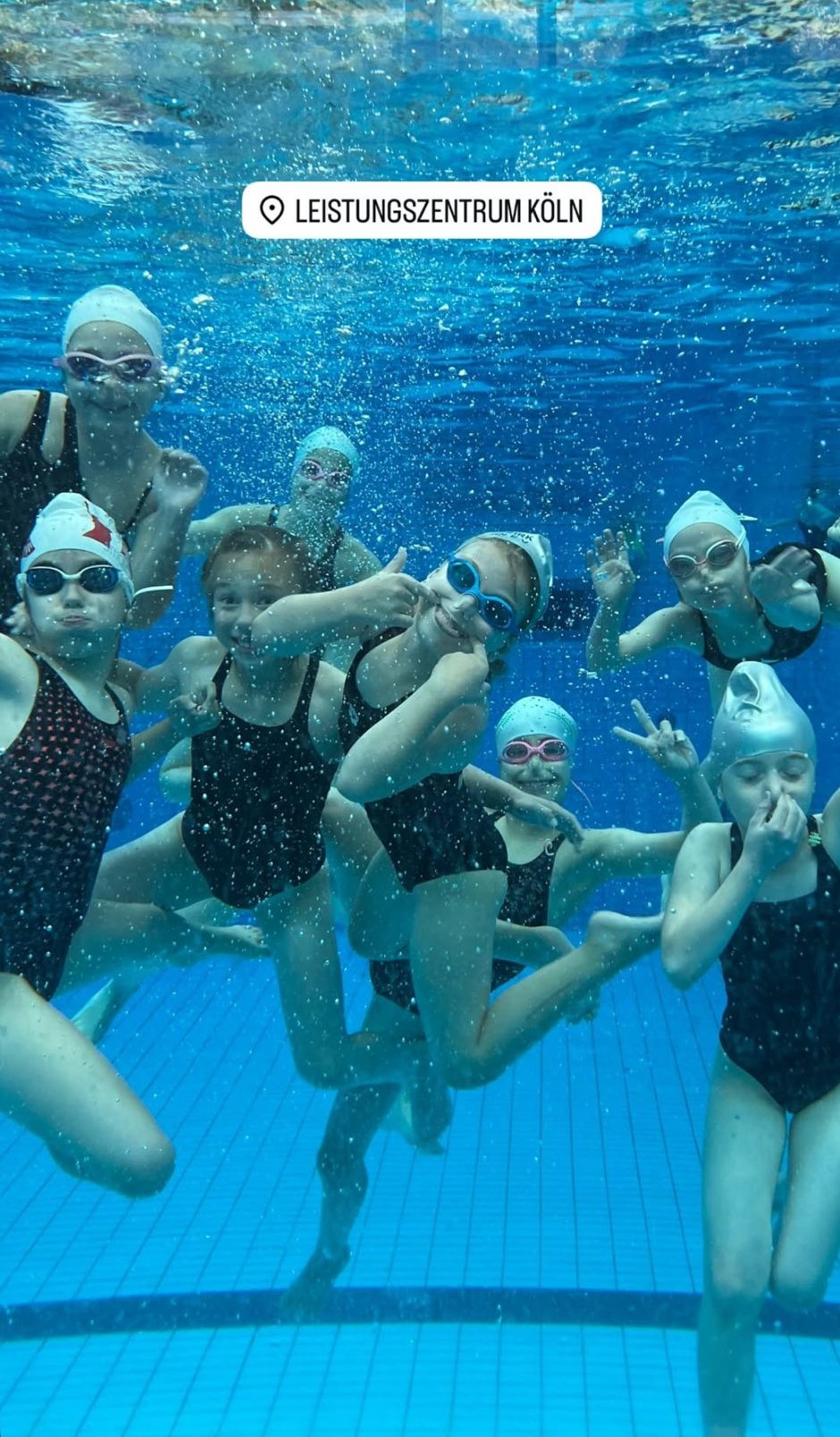 Am 22.06.2025 fand im LZ das erste vom SBM ausgerichtete kindgerechte Nachwuchstreffen der Synchronschwimmer*innen statt. Teilgenommen hatten 9 Nachwuchsschwimmerinnen der Jahrgänge 2018-2013. Die Kinder zeigten dort in einer einstudierten Bodenkür vorgegebene Elemente wie z.B. Standwaage, Brücke oder Spagate. Anschließend präsentierten die Teilnehmerinnen eine Kurzkür im Wasser, ebenfalls mit vorgeschriebenen Basis-Elementen, die für das Synchronschwimmen wichtig sind. Zum Schluss durfe jedes Kind noch zwei Pflichtfiguren präsentieren, die ebenfalls in die Gesamtbewertung einflossen. Mit dieser kindgerechten Maßnahme werden die Nachwuchsschwimmer*innen behutsam an die Wettkampfsituation herangeführt.