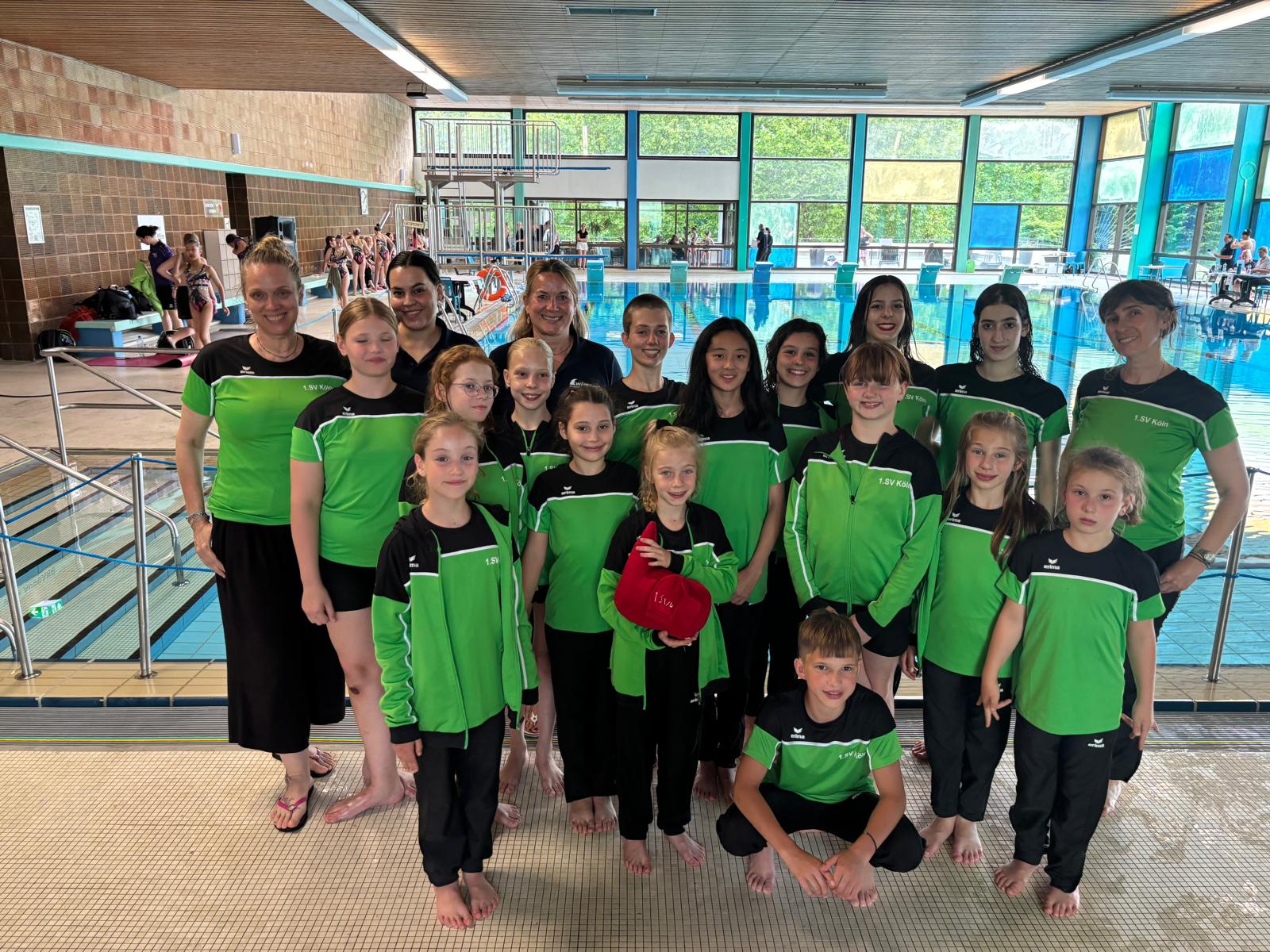 Anfang Juli fanden die AK-Meisterschaften der Synchros in Bochum statt. Die SBM-Synchronschwimmer*innen waren in großer Anzahl vertreten und konnten hervorragende Ergebnisse erzielen. In den Altersklassen der älteren Teilnehmenden konnte sich Nathalie Lux im Solo durchsetzen und gewann die Goldmedaille; zusammen mit ihrer Partnerin Sofia Caponera gelang den beiden im Duett der 2. Platz und somit Silber. In der Disziplin Mixed-Duett siegten die SBM-Schwimmer*innen Frida Lagi und Olkesandr Borysenko. Letzterer holte einen weiteren Titel im Solo männlich mit einer starken Performance zur Musik von Spiderman. Unsere jüngsten Synchros bewiesen einmal mehr, dass die Auszeichnung "SV NRW Nachwuchsleistungsstützpunkt Synchronschwimmen" bei SBM genau richtig angesiedelt ist. Die Mädels erschwammen sich am Samstag durch eine sehr gute Pflichtleistung die Grundlage für die Küren am Sonntag. Das Duett Marta Krenz/Sofia Kyi sicherte sich schließlich Bronze und die Gruppe, bestehend aus Angela Balzano, Marta Krenz, Daria Opryshko und Sofia Kyi zeigte eine hervorragende Kürleistung und gewann einmal mehr die Goldmedaille im Nachwuchsbereich. Aber auch die Kleinsten zeigten ihr Können und so belegte Angelina Malikina im Jg. 2017 den 2. Platz in der Pflicht, Vera Balzano schaffte im Jg. 2018 sogar den 1. Platz.